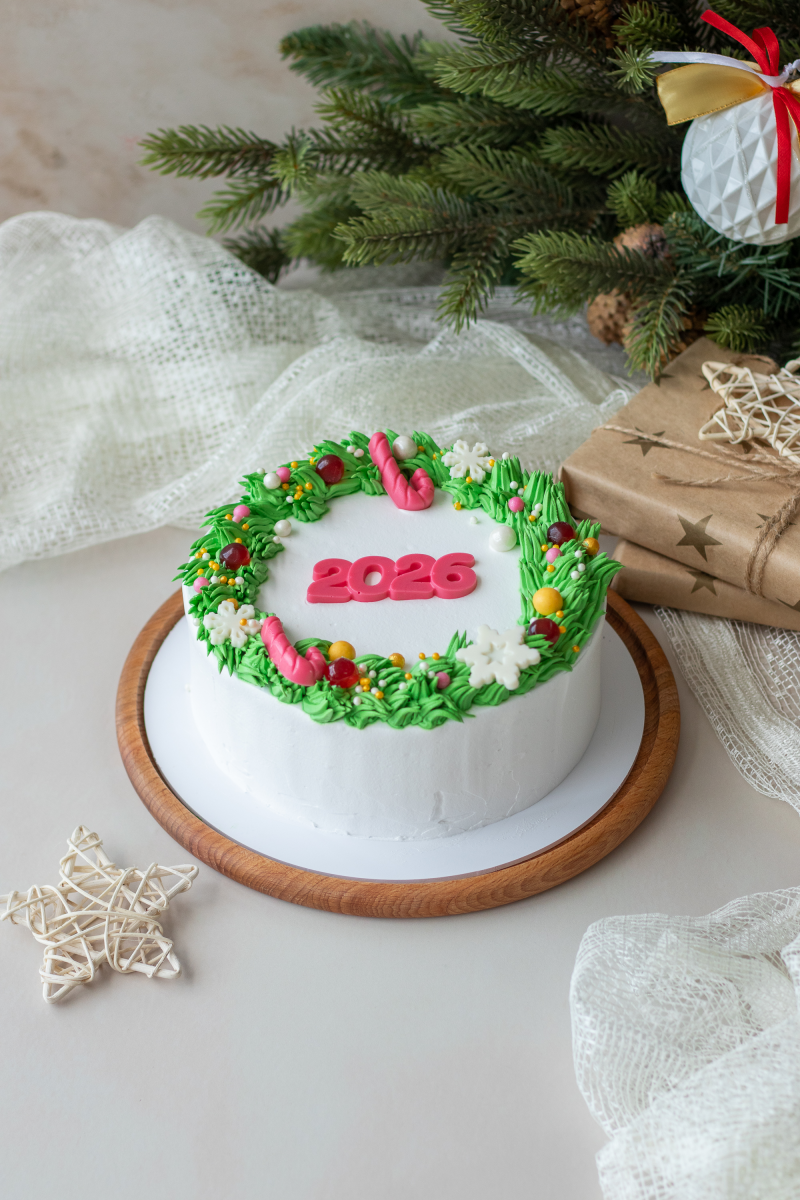 В основе торта - наш традиционный торт "Ананасы в шампанском". Белый бисквит, пропитанный сиропом с игристым вином. В прослойке сливочный крем с кусочками ананса.
